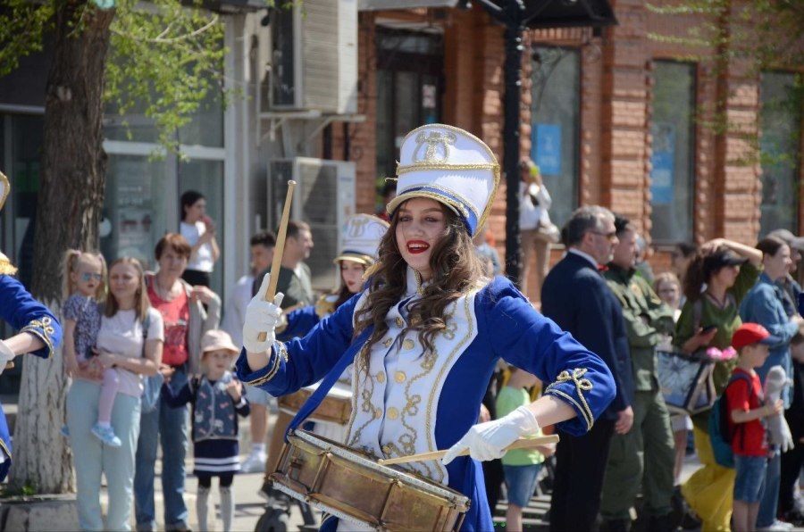 Затем эстафету праздника принял муниципальный духовой оркестр «Оренбург». Музыканты торжественным шествием прошли от улицы Правды до площади «Атриум».