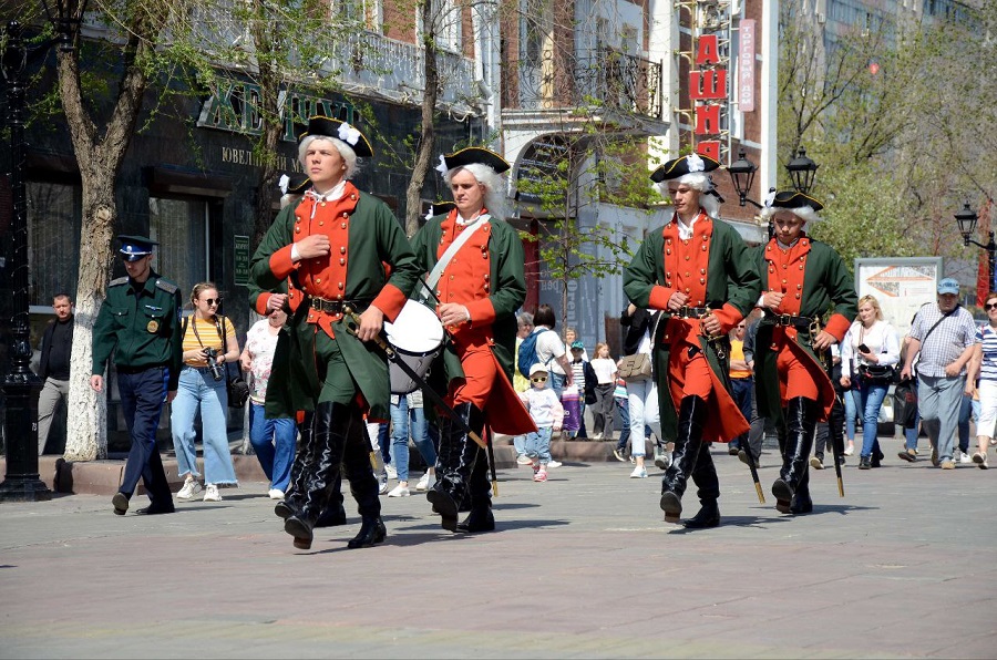 30 апреля в день рождения Оренбурга, от сквера имени Осипенко до улицы Правды прошел парадный марш почетного караула 18 века.