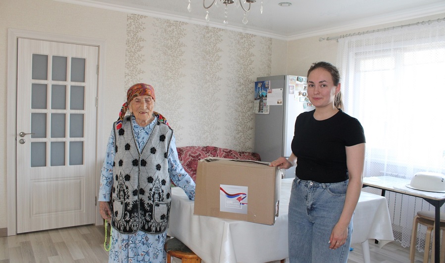 Волонтер Алсу Янбулатова поздравила Абдрахманову Закию Закировну, Испергенову Мадину Зарифовну и Фазылову Мукарраму Губайдулловну с наступающим праздником и вручила им подарочные наборы от регионального отделения ВВПОД «Юнармия» Оренбургской области имени Героя России Александра Прохоренко.