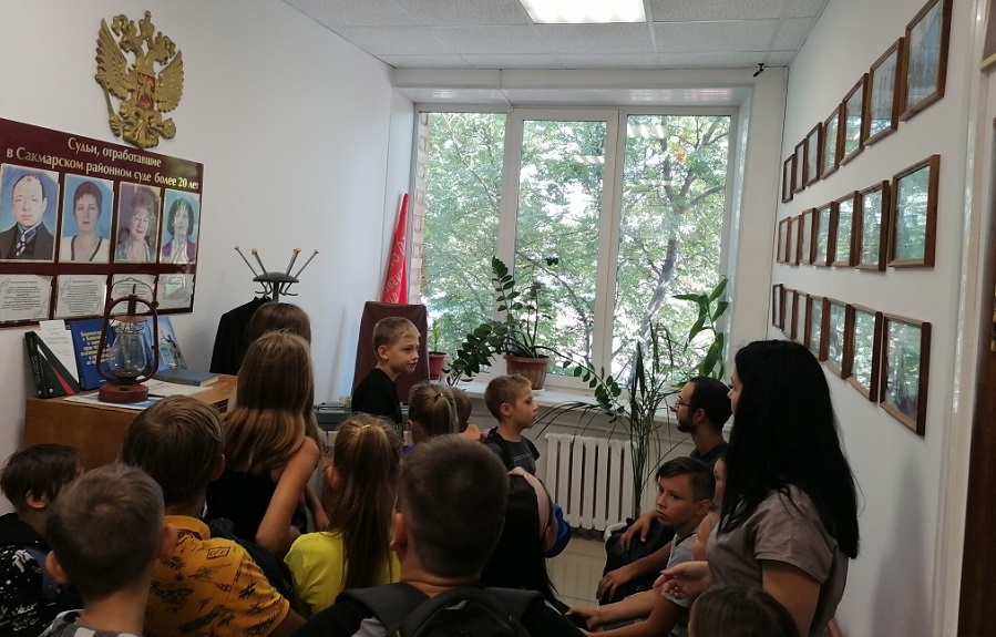 Секретарь судебного заседания А.С. Такеева пригласила ребят на экскурсию по суду, в ходе которой они познакомились с правилами поведения в суде, посетили залы судебных заседаний, побывали на выставке «По страницам истории Сакмарского районного суда». Помощник судьи О.В. Имашева организовала для детей лекцию, а затем в игровой форме закрепила с ними знания правил дорожного движения, поведения учащихся на улице, дороге.