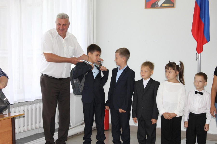В Светлинской школе прошло торжество – вручение рюкзаков с набором школьных принадлежностей детям из семей участников СВО и многодетных.