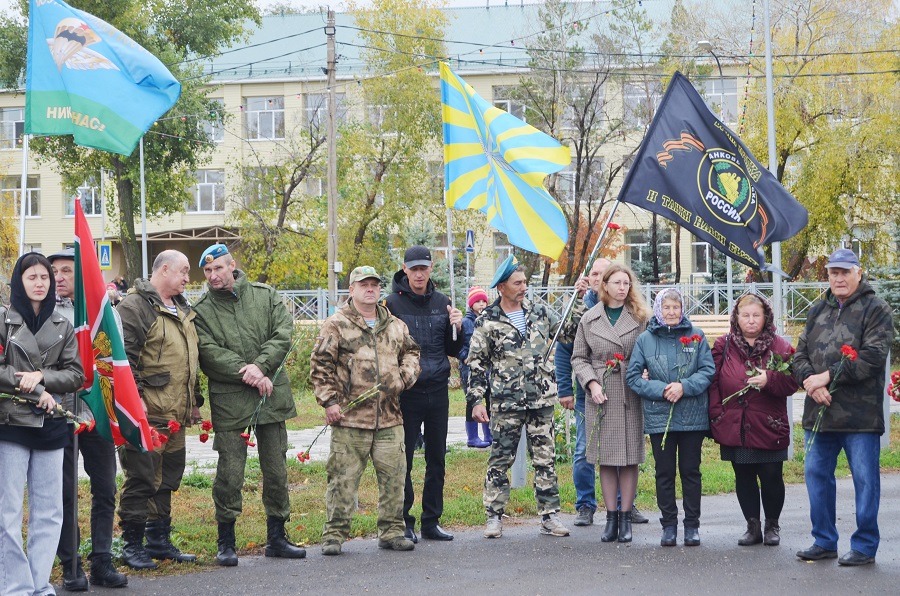 Ветераны боевых действий, волонтеры, родственники участников специальной военной операции и просто жители Красного Коммунара возложили цветы у памятной плиты.