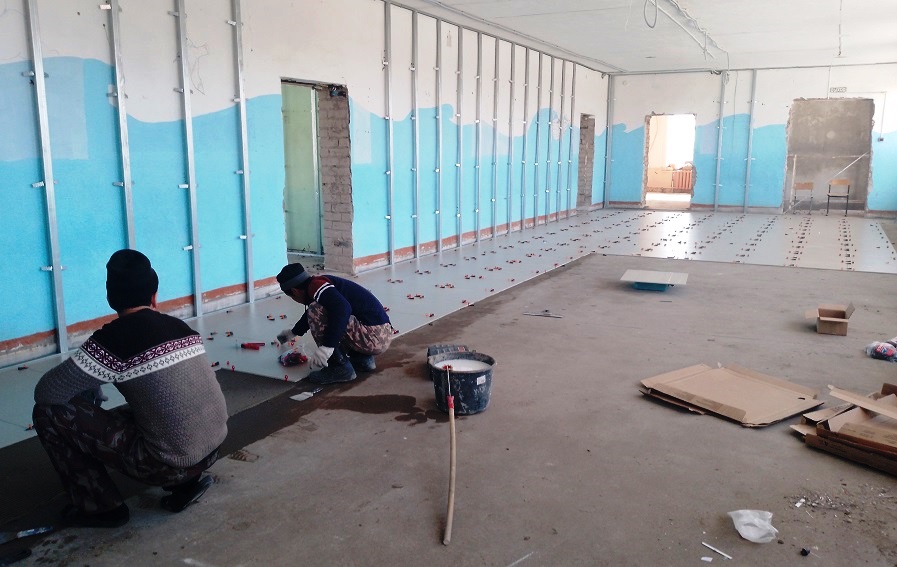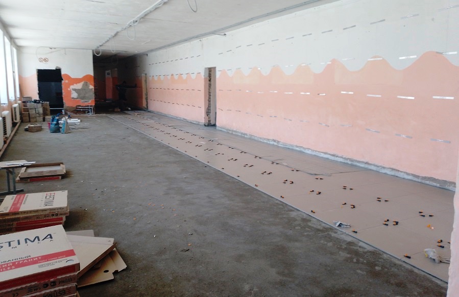 -В настоящее время в корпусах начальной школы и бывшего интерната строители демонтировали полы, отбили плитку в санузлах, разобрали старую проводку. Следом за этим сразу же приступили к укладке труб для канализации, отопления и водопровода, тянется электропроводная система, — рассказывает директор школы Наталья Зеленская. — Производится заливка полов под укладку напольной плитки в санузлах. После ремонта стены коридора будут жемчужно-белого цвета, а стены классов светло-серого.