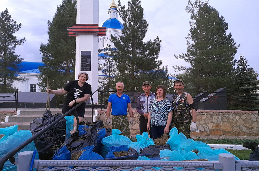 Накануне, сакмарские казачата вместе со своими наставниками Иваном Беловым, Светланой Мажарцевой, активисты АНО «Братишка», волонтеры со своими семьями организовали уборку территории Обелиска Славы участникам Великой Отечественной войны и прилегающей территории.