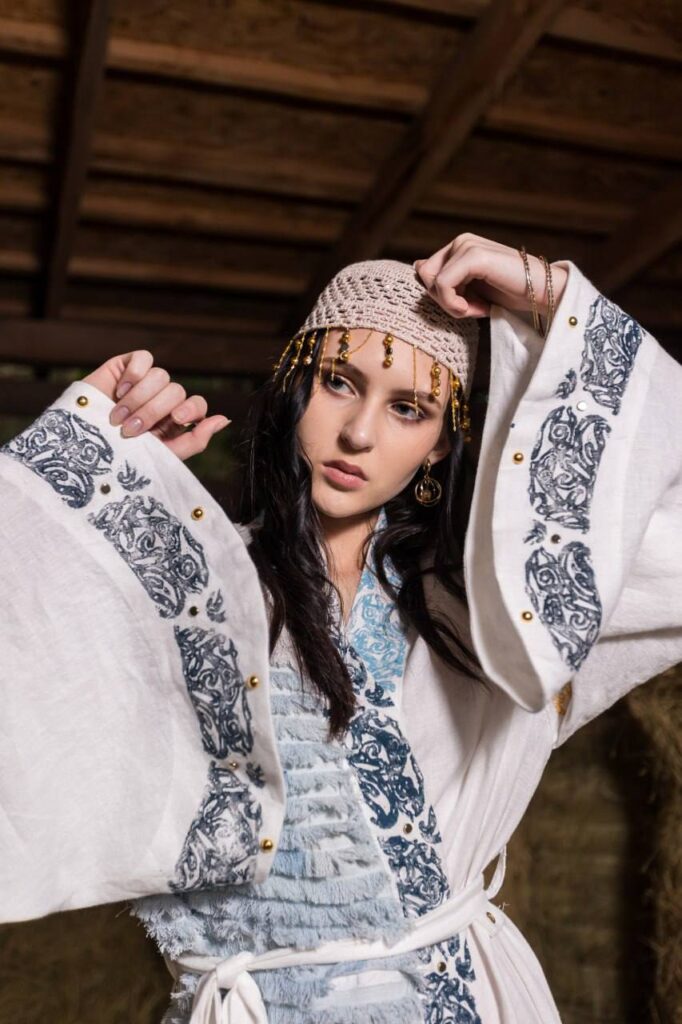 В коллекции представлена одежда, созданная из высококачественных тканей с сарматским декором. Презентация включает 10 уникальных образов.