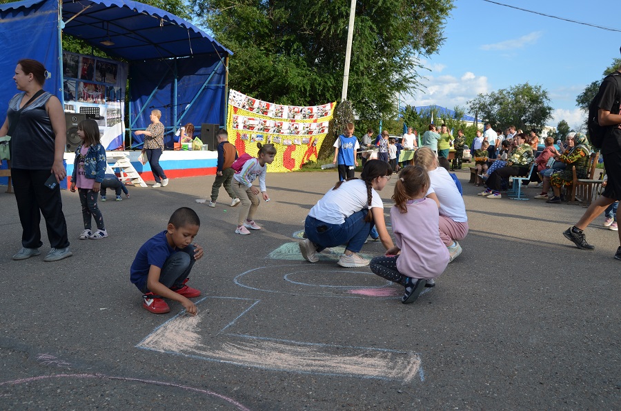 Погода порадовала – тепло и солнечно! К назначенному времени жители и гости дружного поселка пришли на центральную площадь с семьями, друзьями и близкими. На площади было очень оживленно – музыка, тематические площадки, продуктовые лавки. Дети всех возрастов участвовали в различных конкурсах, скучать не приходилось! Особенно всем понравились рисунки разноцветными мелками на асфальте.