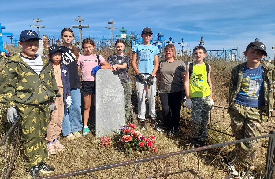 Проявив инициативу, казачата на старом кладбище районного центра провели уборку захоронений ветеранов, участников Великой Отечественной войны, у которых в Сакмаре нет родственников.