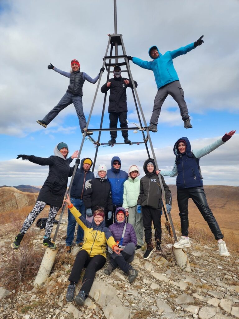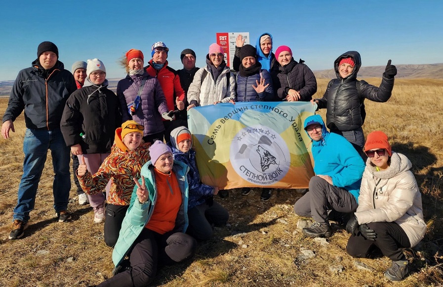 — На вершину горы Малиновая нас почетно сопроводил директор проекта «Степной волк» Сергей Петров – уникальный человек в нашем городе, – комментирует экскурсовод Ольга Шубина. – Он – путешественник, который начал ходить в горы в 40 лет, при этом на его счету уже 17 «пятитысячников» по всему миру, несколько восхождений на горы 6000 и 7000 метров. Для нашей группы его сопровождение было почетным, уникальным. Он не выделяет время коммерческим группам, и наше общее фото с флагом проекта «Степной волк» – сугубо индивидуально.