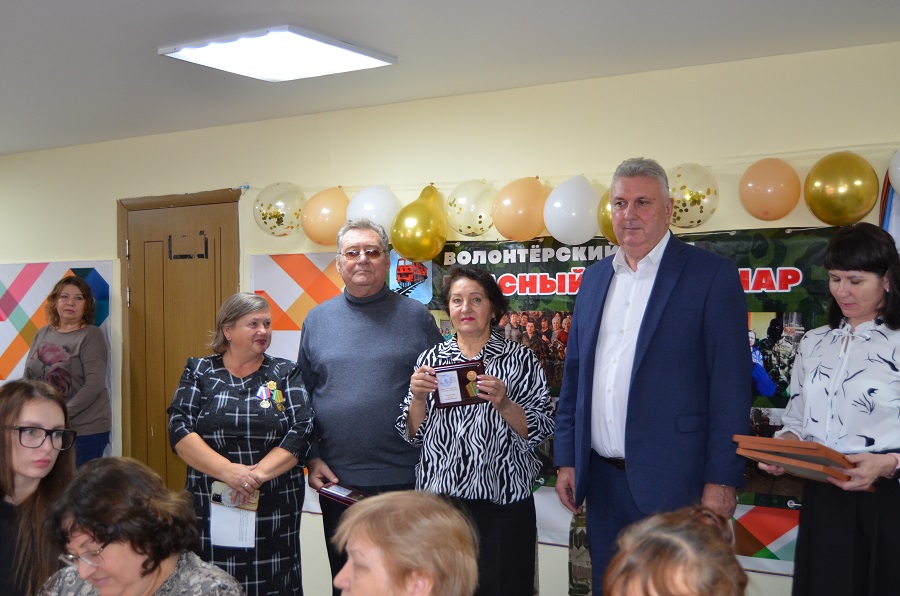 Гости провели церемонию награждения лучших волонтеров медалями «За содействие СВО» и Благодарственными письмами. Участников праздника своими песнями порадовали Олег Синенок, Ирина Шабалдина и вокальный ансамбль «Сударушка» СДК «Импульс».