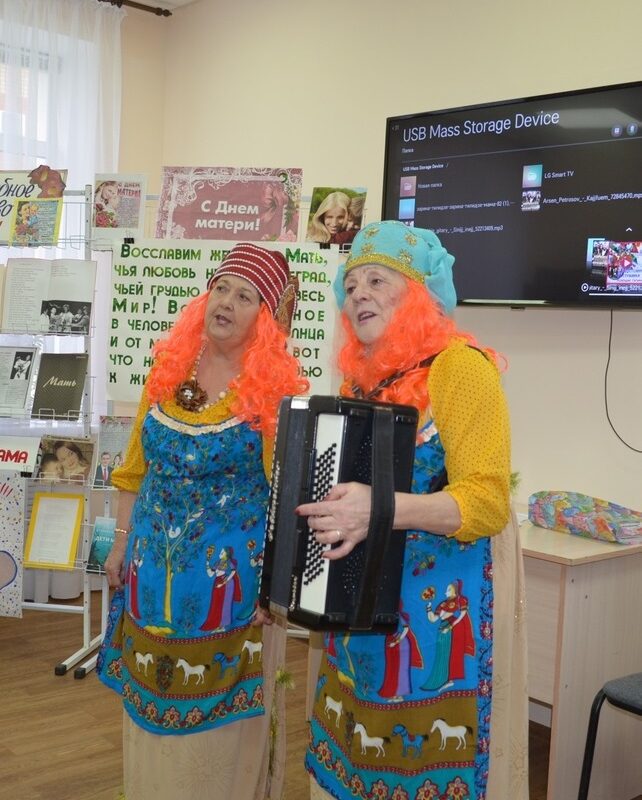 «Серебряные» волонтеры Ольга Вулуниц и Надежда Звонцова приготовили зажигательные танцы, песню и частушки. Гульзира Бикмаметова исполнила песню «Мама», которую собравшиеся дружно подпевал