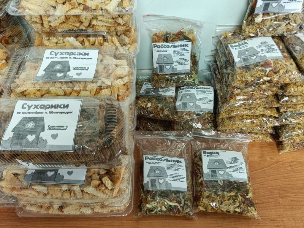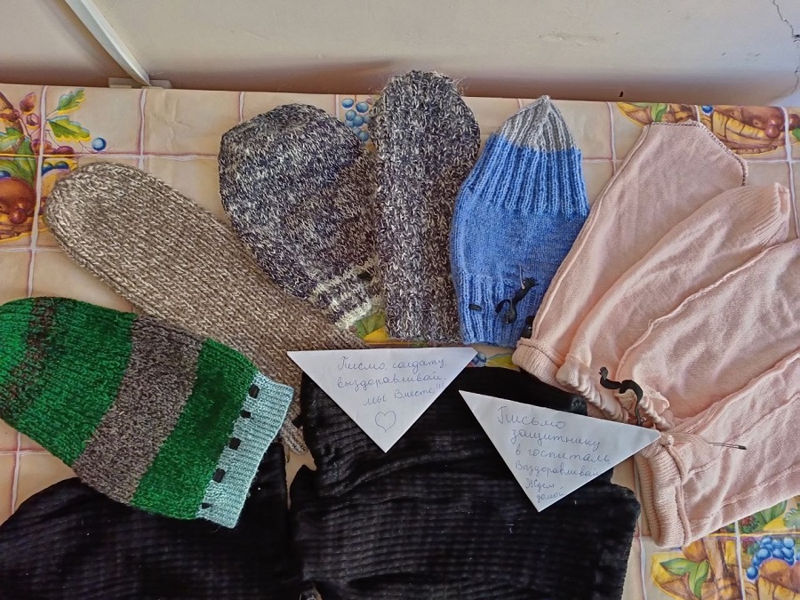 -В настоящее время уже изготовлено более 300 масксетей, а также нашлемники, маскировочные костюмы, сухие супы, сухарики, шьем мужское нижнее белье и подушки, кроим составляющие комплекты для шитья чехольчиков, как мы их называем «теплушечки», для раненых с ампутированными конечностями, — говорит Виктория Игоревна. — В госпиталь печем блины, булочки, передаем сладости, варенье и соленья, а также предметы личной гигиены от местных жителей. Очень хочется сказать много теплых слов о людях, которые всегда помогают. О пенсионерах, которые стараются в меру сил и возможностей помогать. Низкий поклон всем людям, кто помогают нашим Воинам.