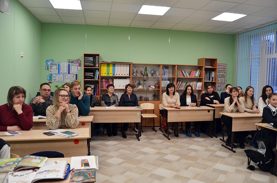 Участников мероприятия на пороге обновленной, уютной школы встретила и поприветствовала ее директор Лилия Владыка. Лилия Маратовна провела экскурсию по школе, показала, как после капитального ремонта проходило оформление классов и фойе. Кстати, общественное пространство учебного заведения было оформлено с помощью выпускника школы.
