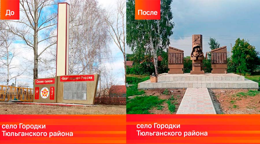 В рамках проекта инициативного бюджетирования с 2021 по 2024 год в различных районах Оренбургской области было восстановлено 56 объектов. Это были как текущие ремонтные работы, так и капитальные, а в некоторых случаях требовалось полное обновление монументов. В юбилейный год муниципалитеты планируют привести в порядок более 100 объектов по всему региону.