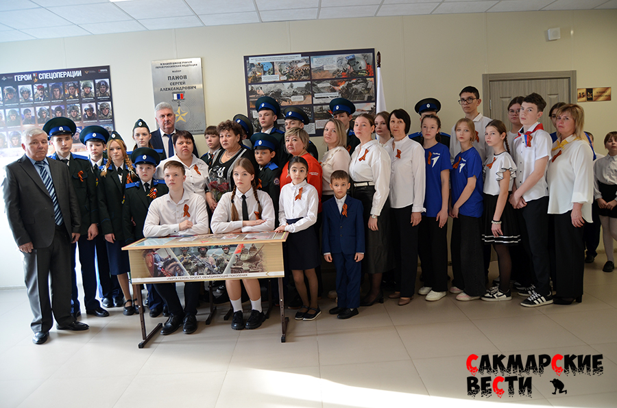 Сегодня, 19 февраля, в Сакмарской средней школе имени Героя России Сергея Панова состоялась торжественная линейка посвященная открытию «Парты Героя».