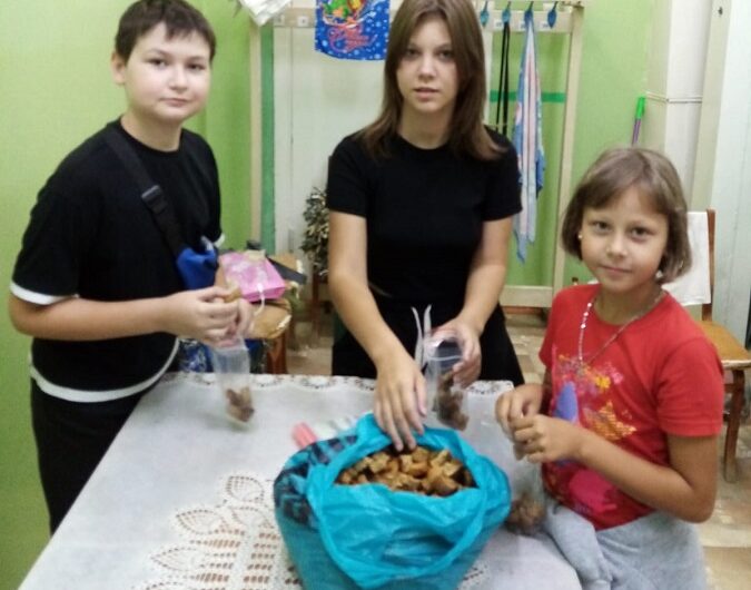 Мария и Надежда пришли в клуб, да так в нем и остались. Внук Марии Дмитриевны – Никита, ученик пятого класса тоже стал активным волонтером. Летом он регулярно посещал клуб АНО «Братишка»: резал ленты для маскировочных сетей, расфасовывал с друзьями сухарики. Сейчас решил на каникулах вновь помогать бабушке и ее подругам.