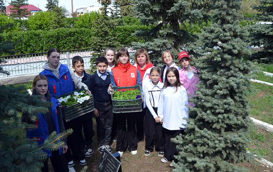 Рассаду предоставила администрация Сакмарского поссовета. К посадке цветов присоединились активисты «Движения Первых» ученики Сакмарской школы имени Героя России Сергея Панова во главе с советником директора по воспитательной работе Светланой Мажарцевой.