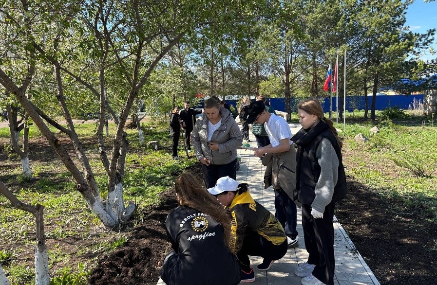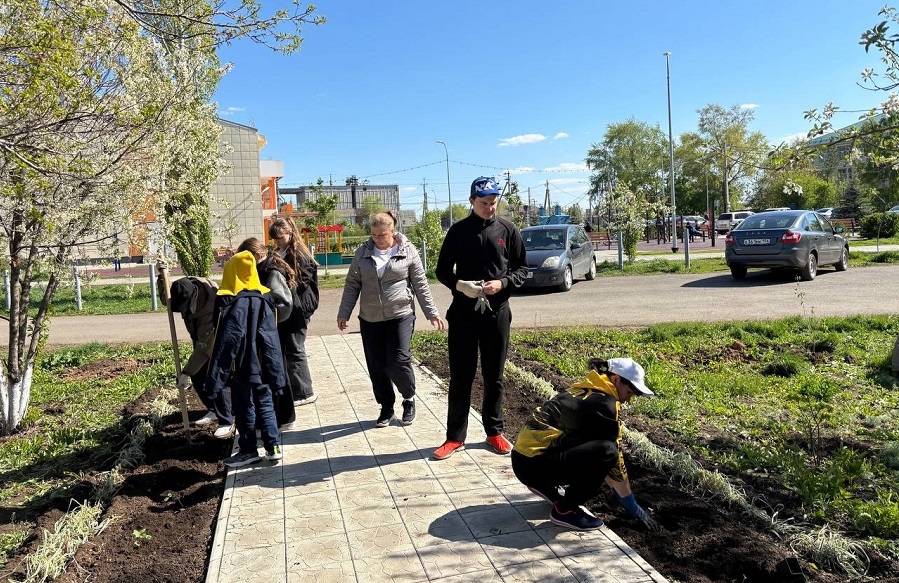 В преддверии Праздника Весны и Труда сотрудники СДК «Импульс» и учащиеся 7 «В» класса Краснокоммунарской средней школы Сакмарского района, под руководством классного руководителя Татьяны Осокиной и учителя технологии Алексея Литвиненко, совместно озеленили сквер Мужества, украсив его цветами.
