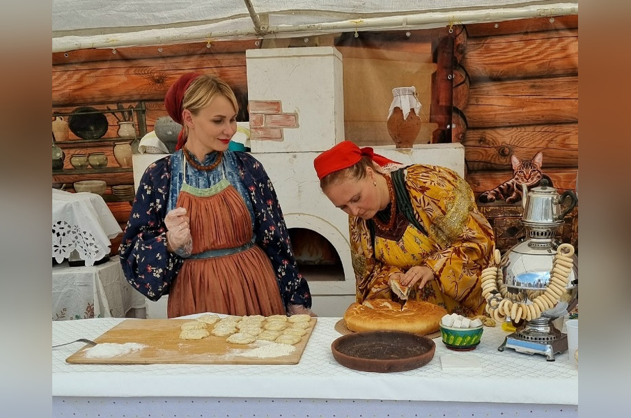 Девушки из народного ансамбля «Тарантасик» и атаман ХКО «Сакмарское» Иван Белов познакомили гостей с особенностями приготовления сакмарской выпечки. Кроме того, посетители подворья могли сами поучаствовать в процессе приготовления какурок и открыть для себя рецепты традиционных казачьих блюд.