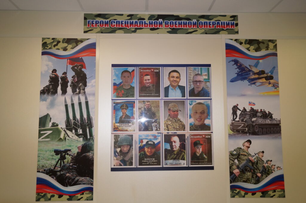 Наиболее продуманной и целостной была признана организация мемориальной работы в Дмитриевской средней школе. Приёмом делегации и рассказом занималась заместитель директора Татьяна Урусова. Центром внутренней экспозиции стала большая единая доска с портретами Героев России, земляков — участников Великой Отечественной, воинов-интернационалистов и выпускников, павших в ходе СВО. Мемориальная работа здесь продолжается и за стенами школы: во дворе недавно был открыт памятник землякам, погибшим в СВО, а также ранее во дворе школы был установлен мемориал памяти авиаторов, отдавших жизнь за Родину.