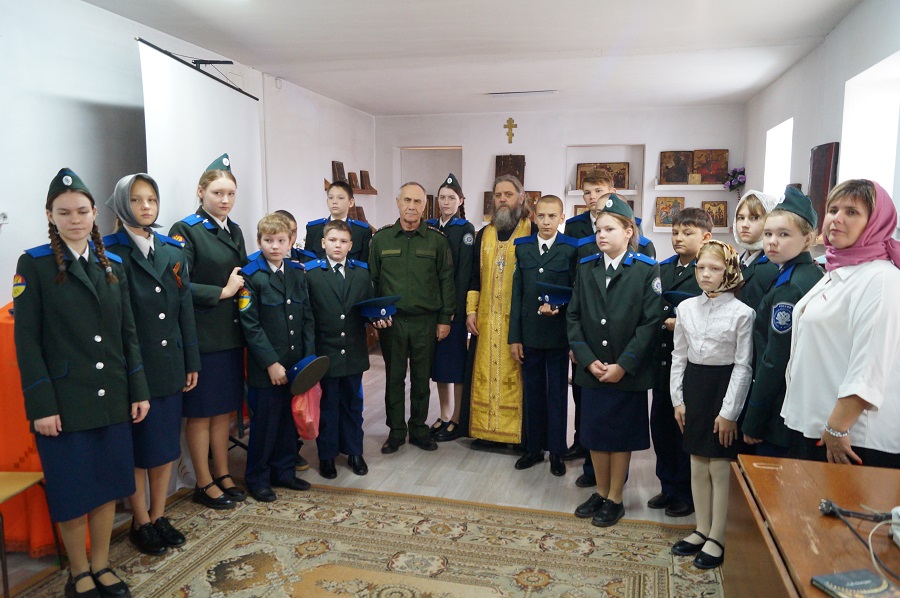 В гости к прихожанам молельного дома, юным казачатам Сакмарской средней школы им.Героя России Сергея Панова приехал настоятель старообрядческого храма Знамения Пресвятой Богородицы в Оренбурге отец Владимир.