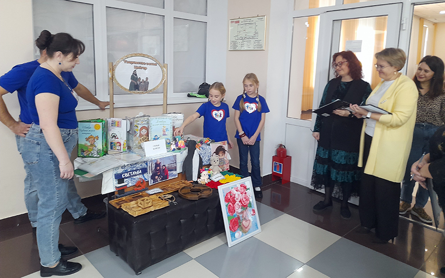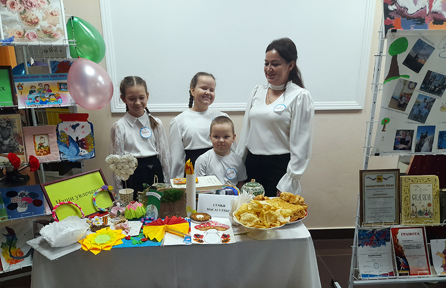 В фойе зала была представлена выставка работ, где каждая семья показала частичку себя – необычные книжные семейные реликвии, рисунки и поделки по мотивам любимых книг и многое другое.
