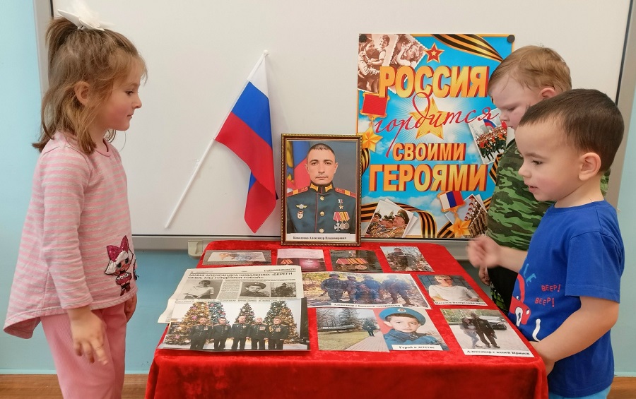 В средней группе детского сада «Улыбка» села Сакмара педагогами организован уголок Героя России Александра Владимировича Коваленко, нашего земляка, мужественного бойца СВО, и к тому же — папы воспитанника детсада Егора Коваленко.