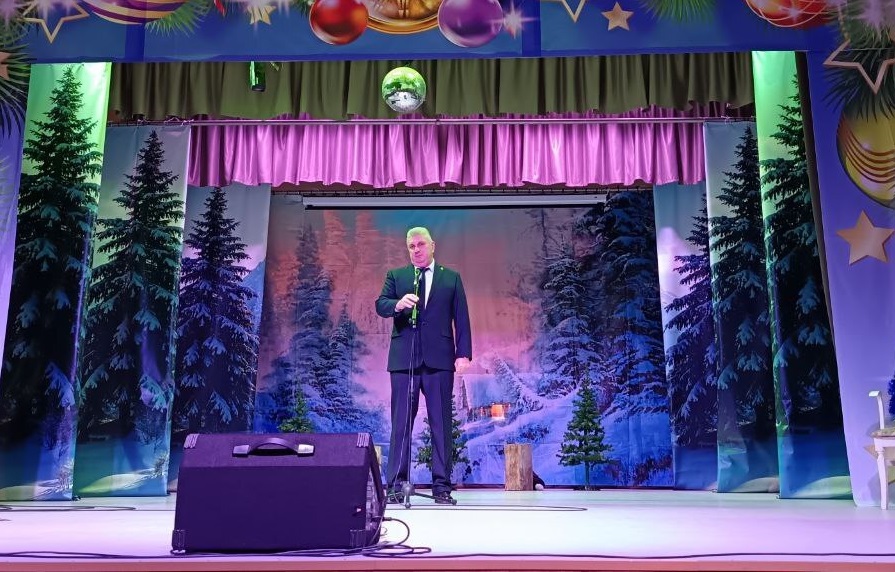 Затем юных гостей пригласили в зрительный зал. Глава Сакмарского района Валерий Востриков поздравил их с наступающим Новым годом.