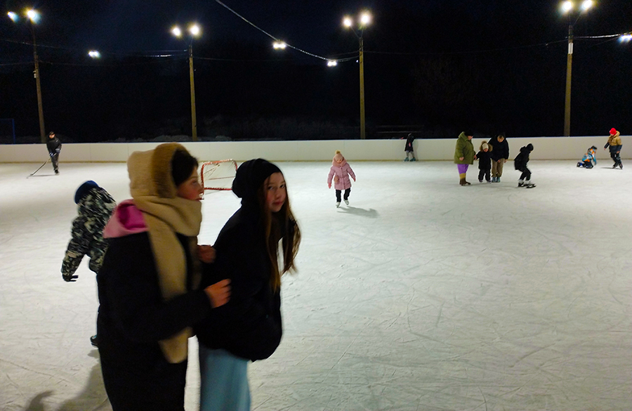 Около трех десятков сакмарцев, кто в одиночку, кто в компании с друзьями или родителями с удовольствием проводили вечер на коньках. А дети в особенности наслаждались атмосферой зимнего праздника и льдом.