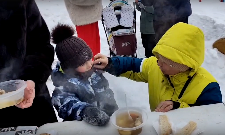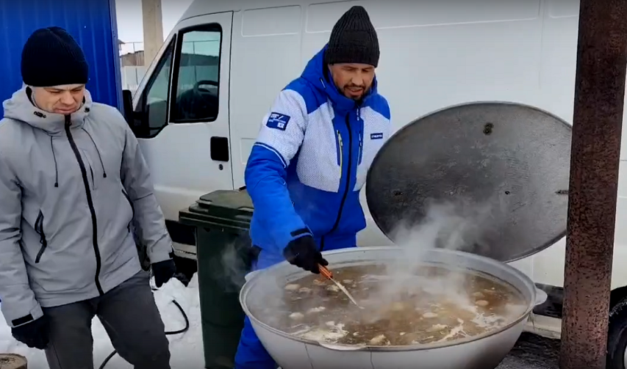На площадке организовали горячее питание. Главным блюдом стала шурпа «куырдак», которая согревала участников в холодный зимний день. Дополняли трапезу свежая выпечка и горячий чай.